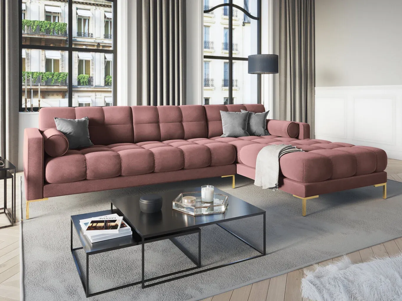 - لون وردي فخم: اللون الوردي المخمل يضفي على الكنبة لمسة من الفخامة والأنوثة، ويخلق جوًا دافئًا وجذابًا في أي غرفة.