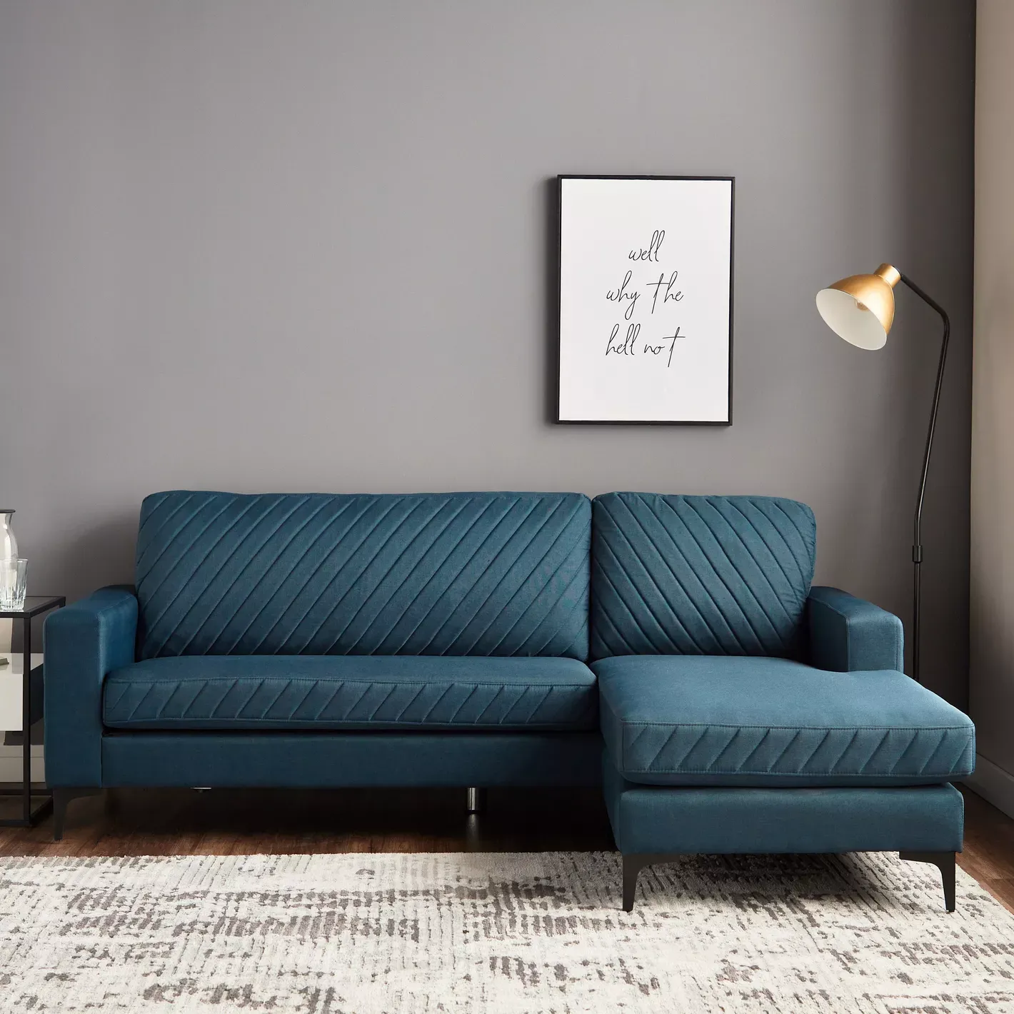 كنب زاوية خشب و قماش أخضر بحري - 209 * 84 * 160 سم