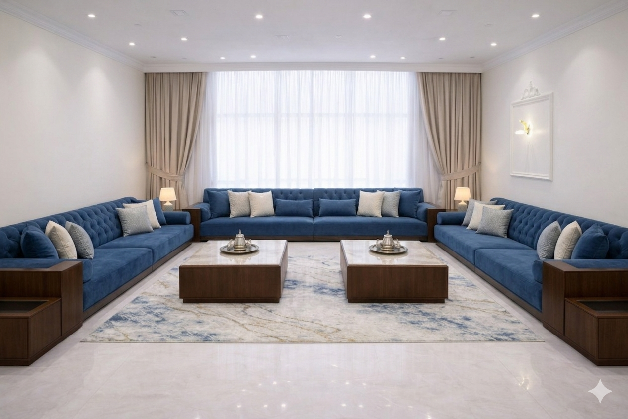 يمكن تخصيص القياسات بالكامل حسب مساحة المجلس والتصميم المطلوب.